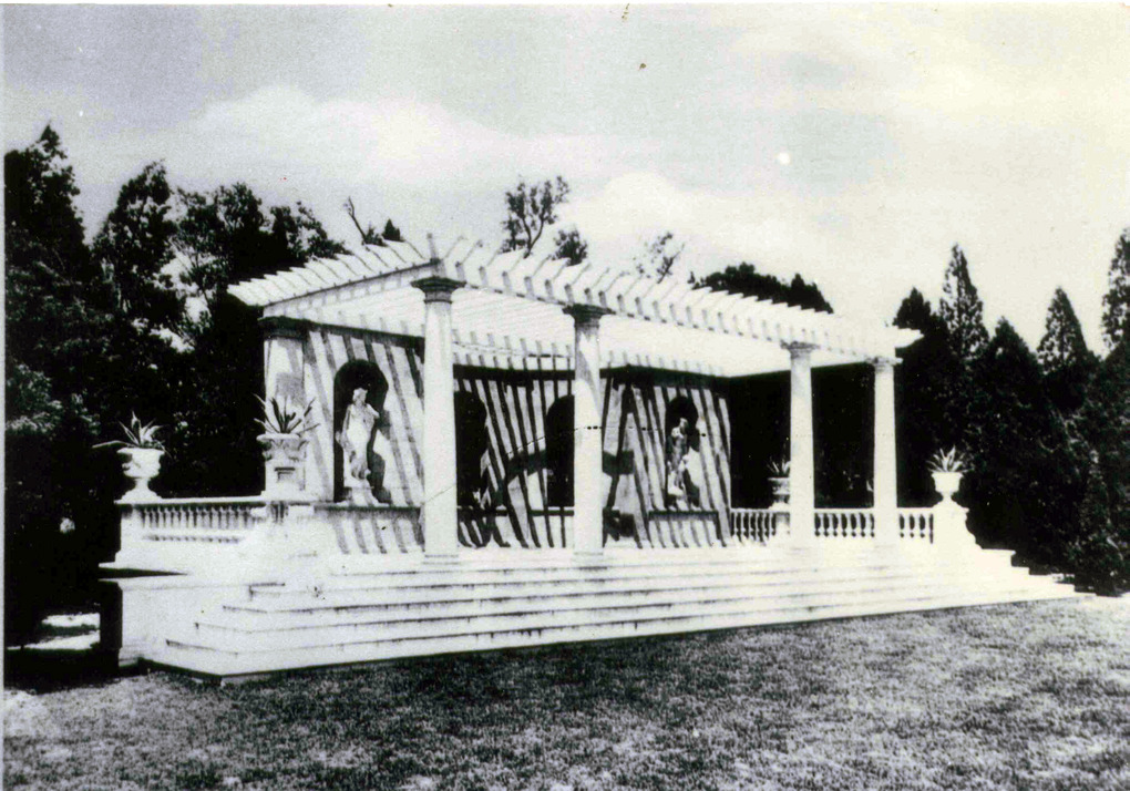 The park was of English style with grass, trees and ponds. Regular concerts from the municipal took place in the park. The original bankshell (a structure designed to amplify sound) visible in the top right part of above picture is still standing today. Designed in art deco style, it probably dates from the late 1920s or early 1930s.