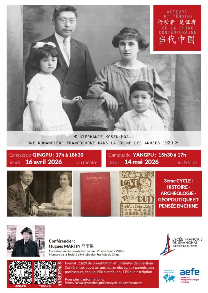 On 16th April 2026, I had the pleasure to give my presentation about Stéphanie Rosen-Hoa / Horose at the Qingpu Campus the Shanghai French School. A similar conference took place in 2025 for the French people in China’s historic society. This presentation was part of a series of conferences for high school students and parents.