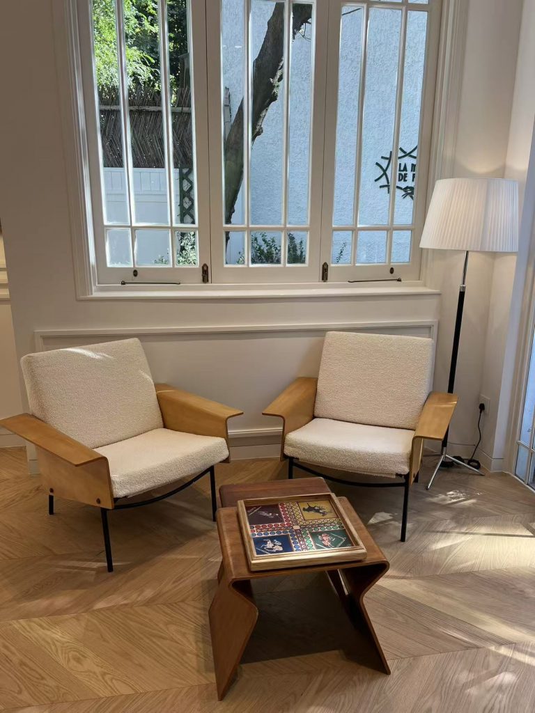 Original parts like the windows have been recreated with a fitting model, creating a new old and new atmosphere that fits the French brand well.