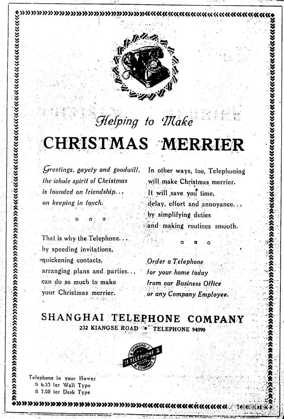 I recently wrote a piece on Shanghai telephone company in Old Shanghai (see post “Shanghai telephone company“). So I would like to wish a Merry Christmas to all readers of the Shanghailander blog with this add from Shanghai telephone company.