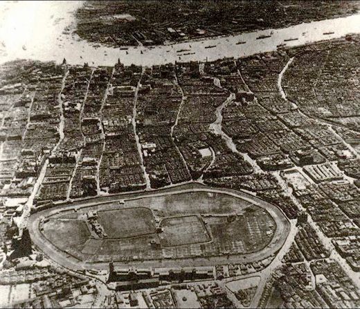 The lilong or lane in English has 78 houses, each of which were originally occupied by one family. As the house were quite large, it was clearly an upmarket residence. The houses were later subdivided and about 450 families now live in Cité Bourgogne. The location at the bottom Avenue du Roy Albert (today Shaanxi Nan lu / 陕西南路)was on the edge of the urban area of the former French Concession. On the other side of Route Frelupt (Jianguo Xi Lu / 建国西路) was located the French shooting range, where is no the Xu Hui Stadium.